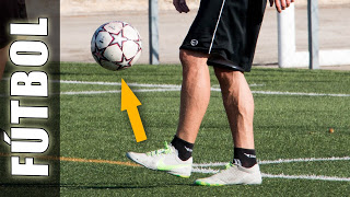 Procura que el balón golpee justo encima de tu empeine (y no lleves las agujetas atadas con doble nudo porque pueden desviar la trayectoria limpia hacia arriba que intentas lograr).